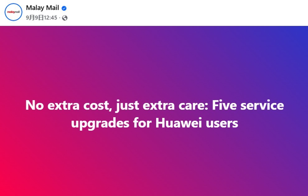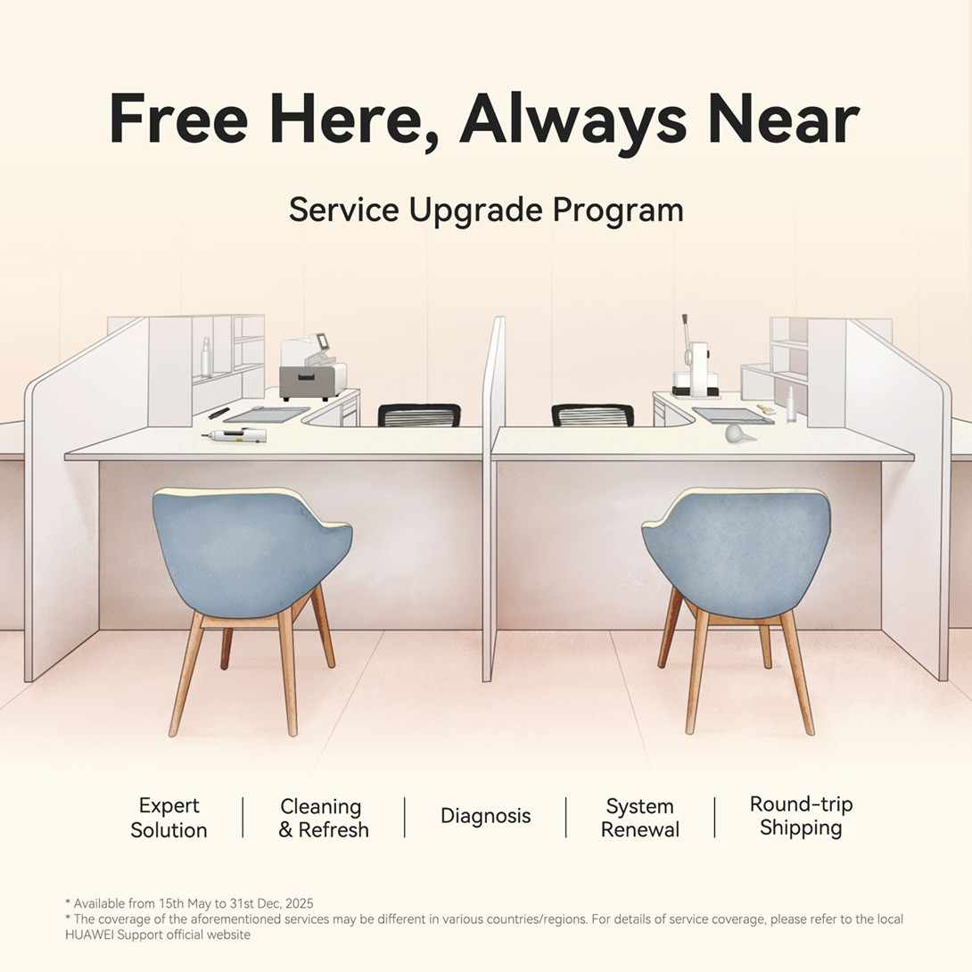 2025年第三季度,华为公布海外服务政策升级,其是业界首次面向海外市场推出包括免费咨询、免费清洁、免费检测、免费系统升级、寄修免物流费的五大基础服务免费,华为旗下平板、笔记本、手机、智能穿戴及音频均可享受此服务。