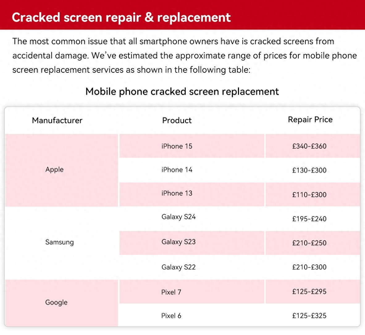 比如某些热门款手机在英国维修屏幕的花费大约在300英镑左右,并且服务覆盖的区域有限。加之海外一些地区缺乏本地化供应链,技术标准、零部件储备不完善,获取零部件的难度较大,成本也更高,再加上较高的劳动力成本,一次简简单单的产品问题检测或是系统更新就可能面临着“钱包大出血”。
