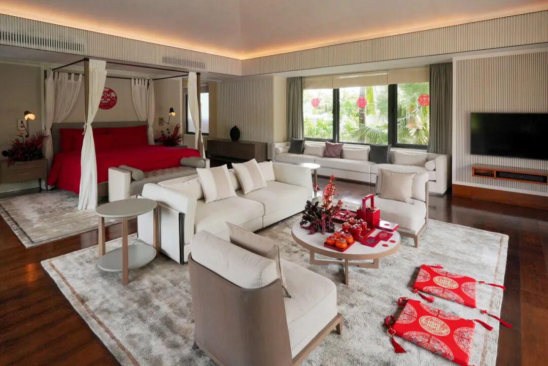 4间卧房可容纳8大4小宾客,以及配备多主题婚礼装饰空间。中式古典,庄重雅韵;西式现代,勾勒浪漫——为新人提供个性定制的各种可能。