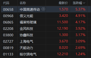 电力设备股涨幅居前,福莱特玻璃涨超4%。华泰证券发布研报称,风电新增装机高增,招标规模高景气,25H1国内风电新增装机51.4GW,同比+99%,新增招标71.9GW,同比+9%。展望后续,我们看好风机涨价订单启动交付+海外出货占比提升,盈利修复弹性大;管桩海缆受益于国内外海风高景气,订单放量可期,出海贡献向上空间。